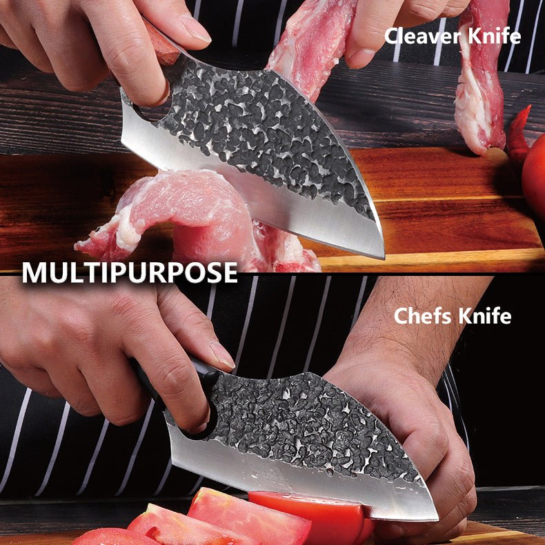 Zeg dus vaarwel tegen rommelige messensets en hallo tegen eenvoud en veelzijdigheid. Dit handgemaakte multifunctionele koksmes is de enige hulp die u nodig heeft in uw keuken. Maak u klaar om de kracht te omarmen van één enkel, krachtig mes dat elke culinaire uitdaging met gemak aankan.