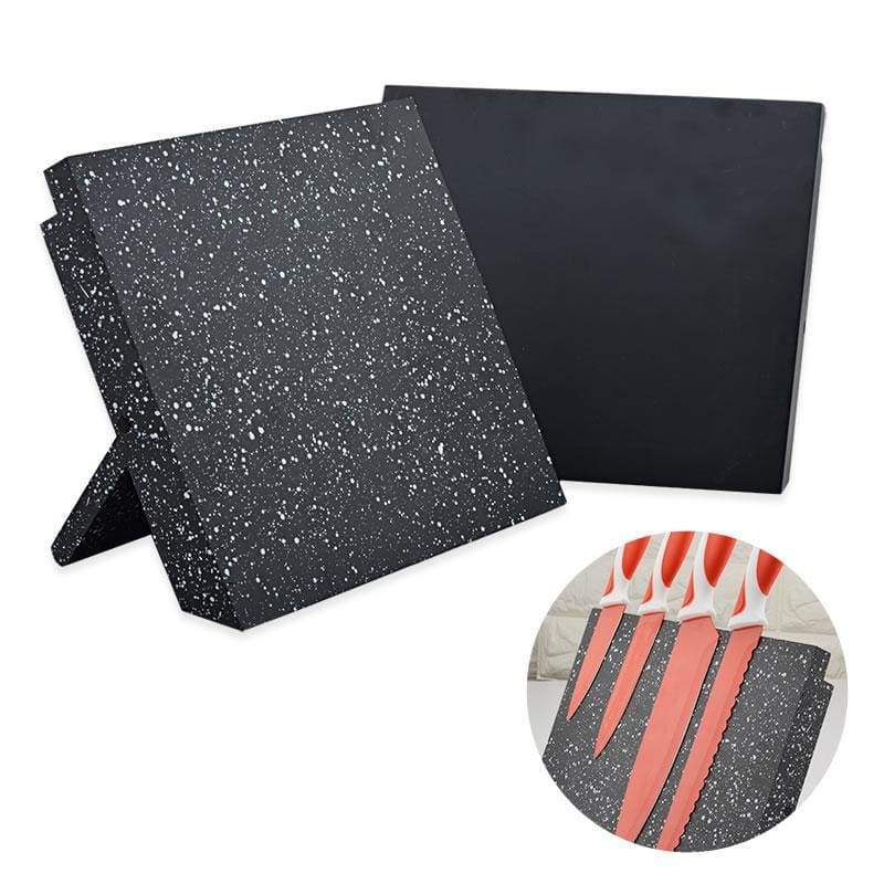 Ons stevige en moderne messenblok is een nette en aantrekkelijke manier om uw messen veilig en binnen handbereik te bewaren, terwijl het minimale of kostbare ruimte op uw werkblad in beslag neemt.